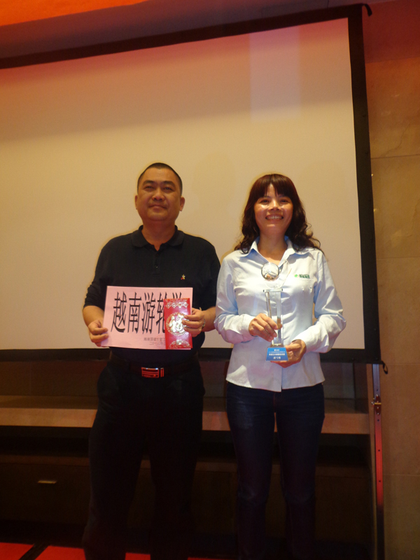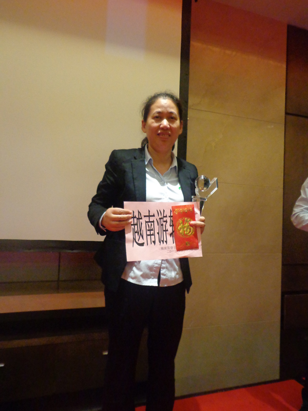 谢丽:琼山店开业至今才一年有余;2012年以来,门店业绩节节高升,在各姊妹店中名列前茅;在日常工作中重视我司系列产品的推广;积极配合我司开展各种推广活动;在城管、场地、费用方面遇到困难时,总是绞尽脑汁,克服困难,成功的举办多次活动;在她的带领下,我司产品取得了突飞猛进的增长,年销售一举突破200万,傲视群雄,一举夺魁。