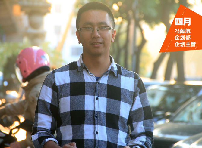 有文采,会剪片,这应该是他在国健家人中的第一印象吧。关于“外表高冷”这一说法,冯献航用了一句话作为回应:“内心妖娆”。“我还是挺闷骚的一个人,只不过在工作的时候会比较专注吧。在国健做企业文化,我用所擅长的填补了当时不太擅长的一面,用了一个不同的载体——视频,相比于阅读,视觉的传达更加真实、丰富,文化建设与视频结合,这应该是属于我工作的一个特色吧。不会剪片的文案当然不是好企划啦。”他狡黠的一笑。