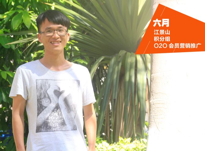 爱笑的人,运气不会太差,这个无论何时你看到他,他都是一个对大家都笑脸相迎的男生,运动给了他阳光的气质,两颗虎牙给了他些许的宝里宝气,这就是今天《我们12个》推出的2015年6月份优秀员工,积分部——江景山。